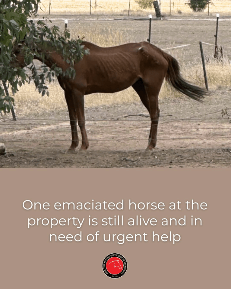 – Another horse was still alive — severely emaciated — when authorities finally intervened.